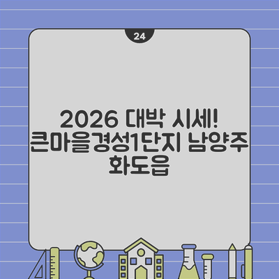 최근 부동산 시장의 변화로 인해 경기도 남양주시 화도읍 큰마을경성1단지 아파트의 시세에 대한 걱정이 많으신가요?