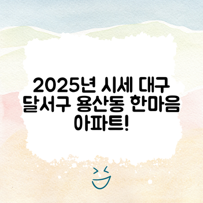 대구시 달서구 용산동 한마음 아파트 2025년 12월 시세